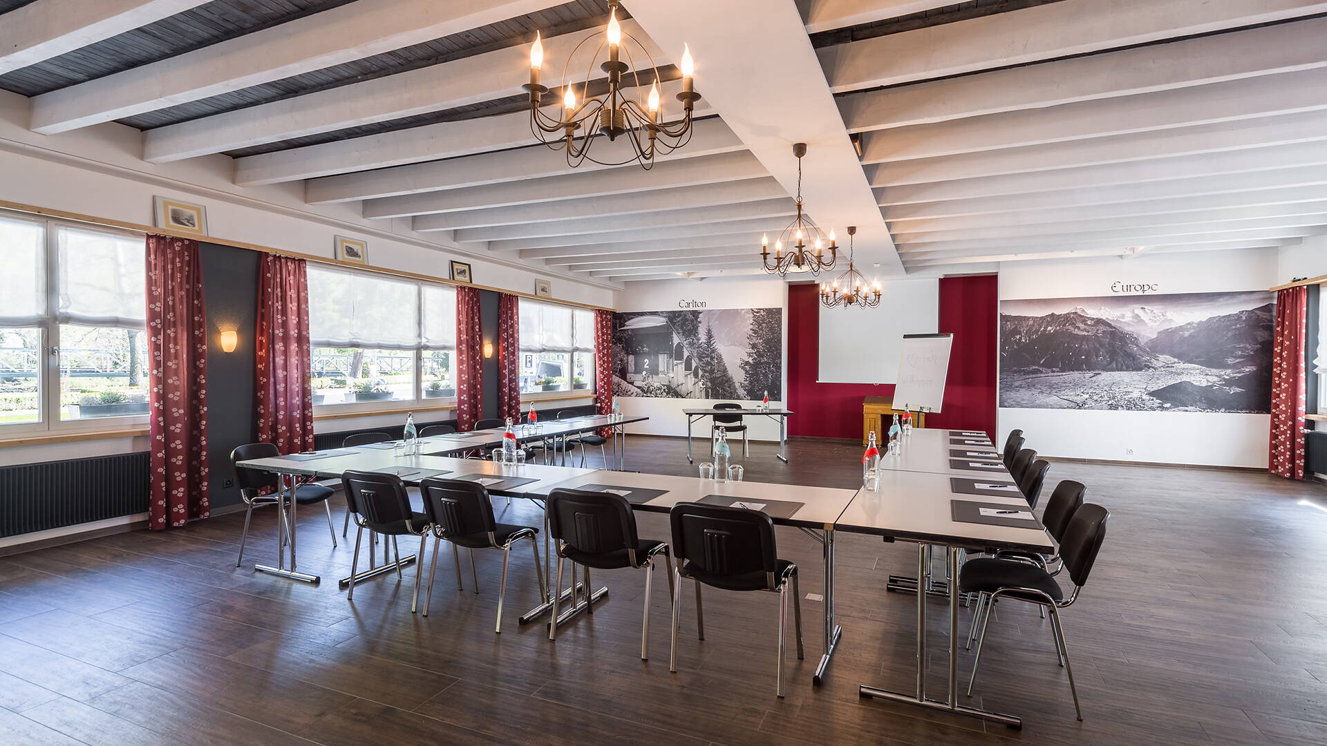 Das seit 1898 bestehende Carlton-Europe Vintage Erwachsenenhotel schreibt seit über 120 Jahren Geschichte, welche sich bei den unzähligen Einrichtungsgegenständen und Exponaten wiederspiegelt. Das Haus bietet über 80 unterschiedliche Hotelzimmer im 4 Sterne Segment an und wurde in den letzten Jahren umfassend renoviert und erweitert. Geführt wird das Jugendstilhaus von einem jungen Team, das Wert auf die sehr individuelle Betreuung der Gäste legt. Die Zimmer sind im altenglischen oder Boutique-Stil eingerichtet. Sieben Seminarräume und Festsäle haben Kapazitäten für 10 bis 100 Gäste. Im Carlton-Europe befinden sich verschiedene Restaurants, welche eine breite Palette an Speisen anbieten. Zum Ausklang des Tages lädt der Naturbadeteich im Hotelpark oder das hoteleigene «Oberländer Wellnessdörfli» zum Entspannen ein.