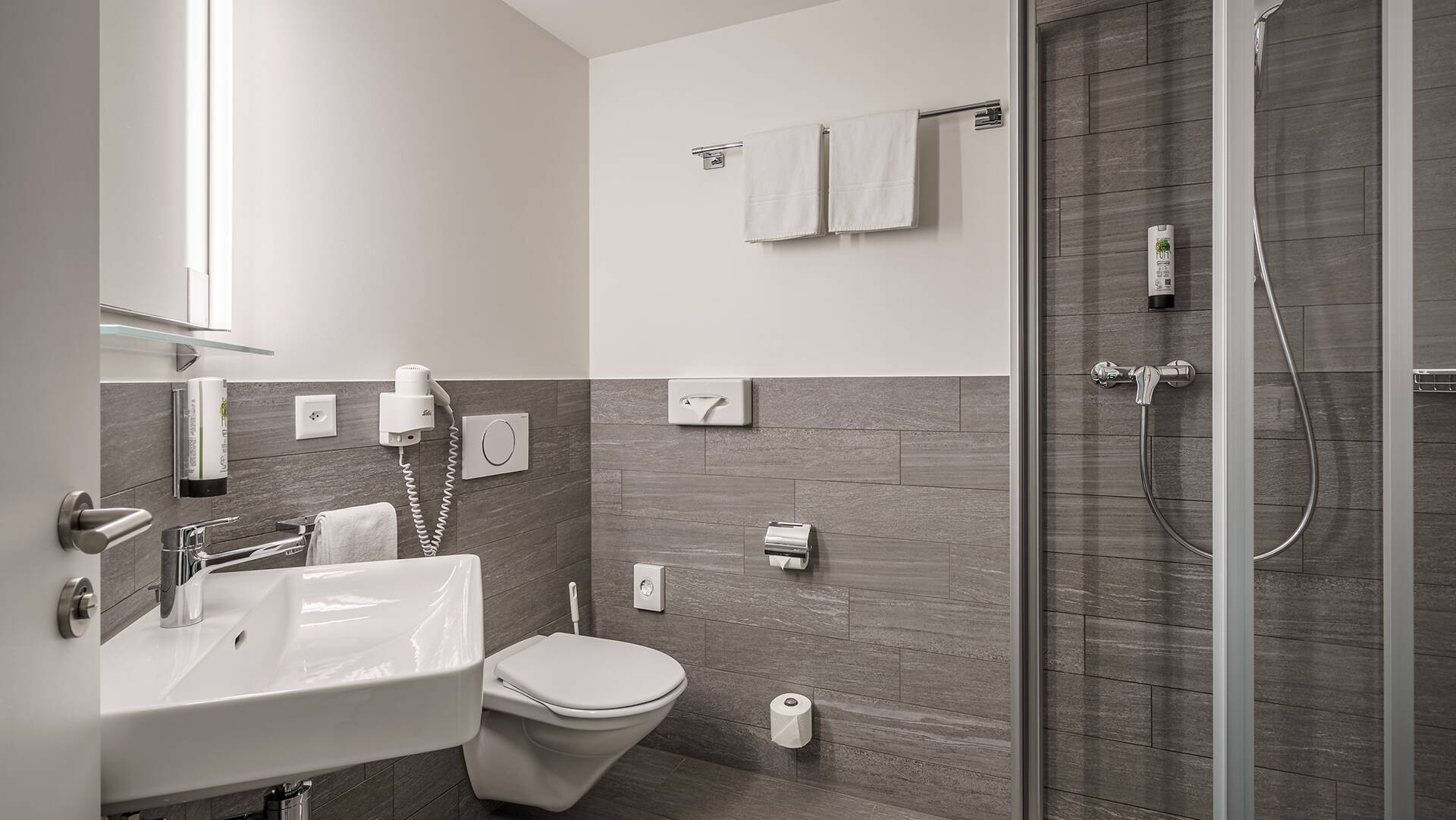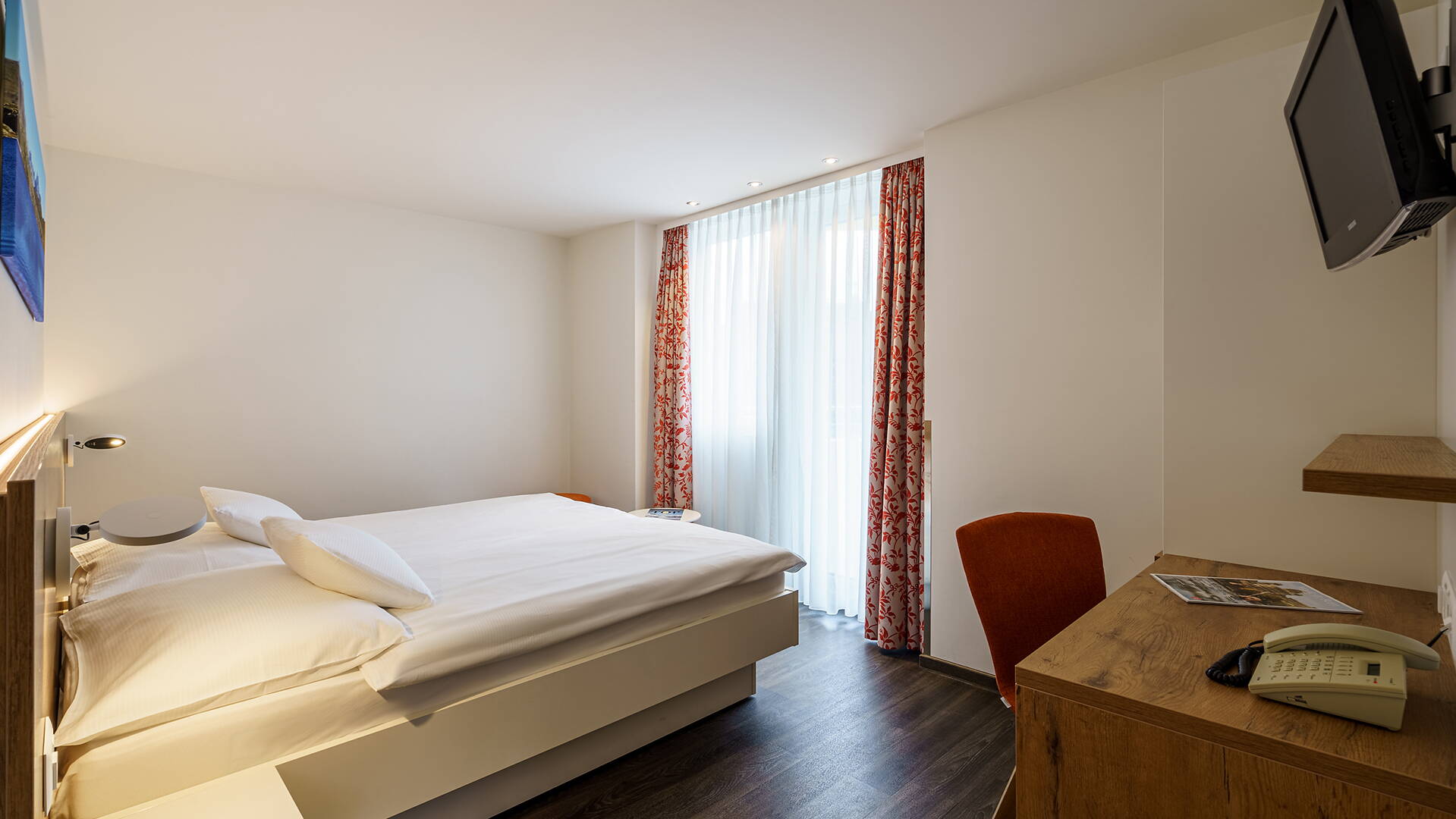 Alle Zimmer haben ihr eigenes Badezimmer mit Bad/Dusche/WC, verfügen über Telefon, Digital-TV, Safe, W-LAN und Kühlschrank. Die neu umgebauten Zimmer entsprechen höchsten 3-Stern Hotel Ansprüchen.