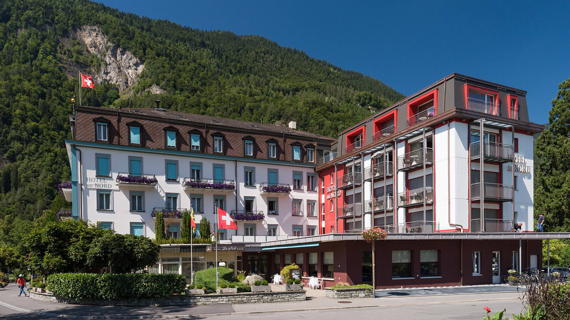 Das traditionsreiche Hotel Du Nord liegt im Herzen von Interlaken, unmittelbar an der weltberühmten Höhematte. Das traditionsreiche Haus verfügt über insgesamt 55 Zimmer, wovon 32 im traditionellen Stil, sowie 23 Lifestyle Zimmer und Juniorsuiten. Der Bahnhof Interlaken Ost (Ausgangspunkt für Ihre Exkursionen in die Jungfrau Region), das Kongresszentrum sowie zahlreiche Restaurants, Bars, Boutiquen, Geschäfte und ein Supermarkt sind fussläufig in wenigen Minuten erreichbar.