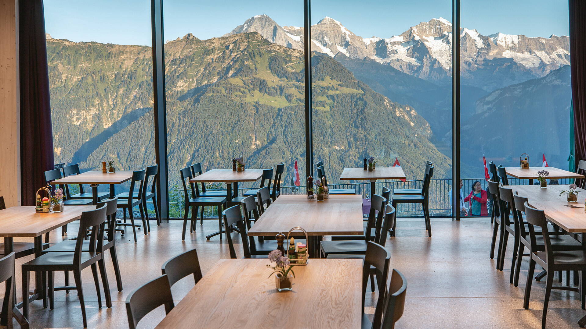 In nur 10 Minuten erreicht man den Hausberg von Interlaken mit der Standseilbahn. Oben angekommen eröffnet sich ein fantastischer Ausblick auf die beiden Seen und auf Eiger, Mönch und Jungfrau. Das Restaurant bietet drei verschiedene Räumlichkeiten. Der neu gebaute und im Jahr 2017 eröffnete Saal «Jungfrau» bietet im lichtdurchfluteten Raum Platz für bis zu 130 Gäste.
