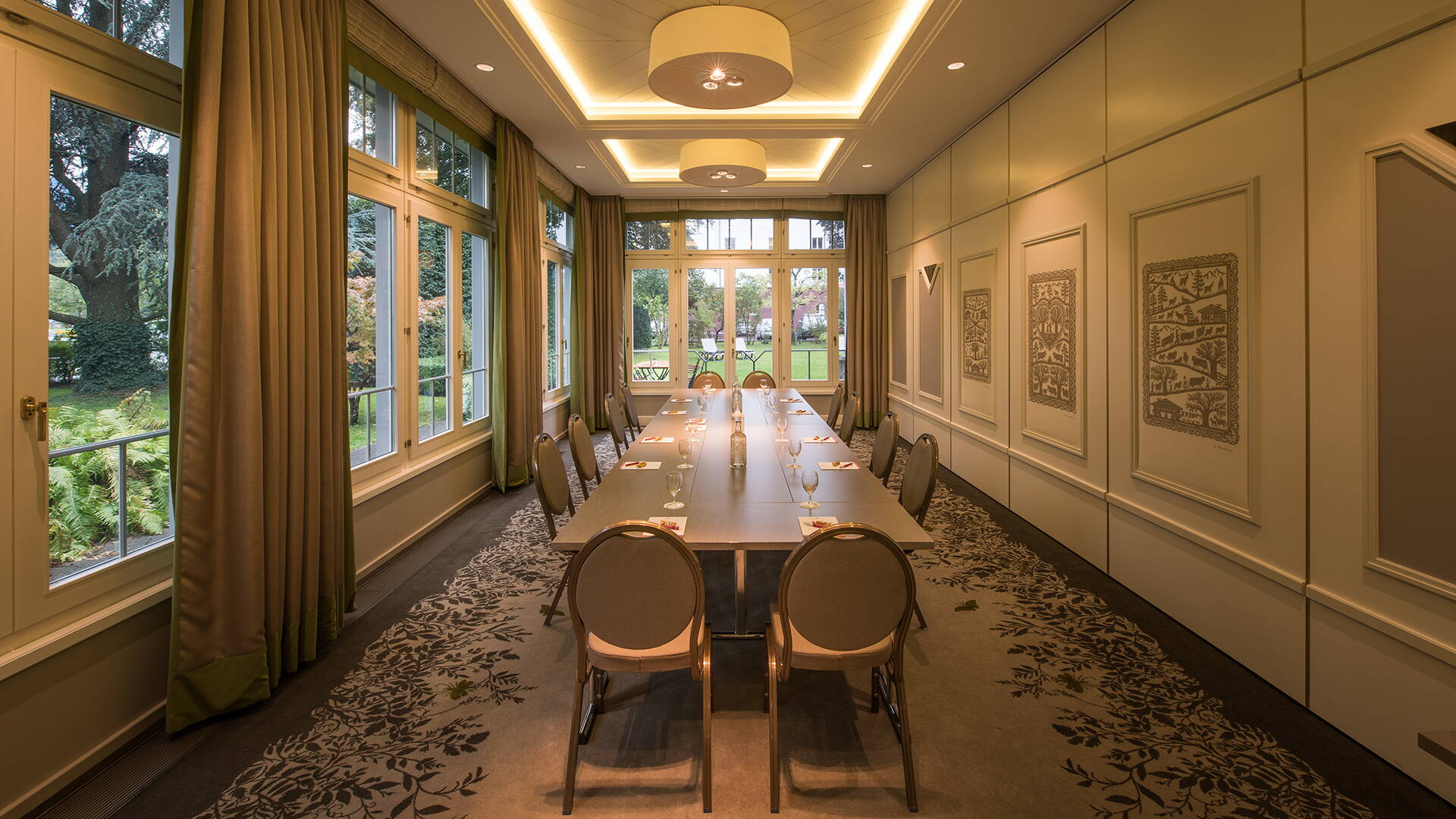 Unsere Seminarräume im Pavillon sind nicht nur was Design betrifft aber auch was technische Hilfsmittel angeht auf dem neuesten Stand. Die Räume sind von viel Tageslicht durchflutet und grenzen direkt an unseren Hotelpark, der erholsame Kaffeepausen im Grünen ermöglicht. Diese Räume sind dank Schiebewände sehr flexibel und können je nach Bedarf vergrössert oder auch verkleinert werden.