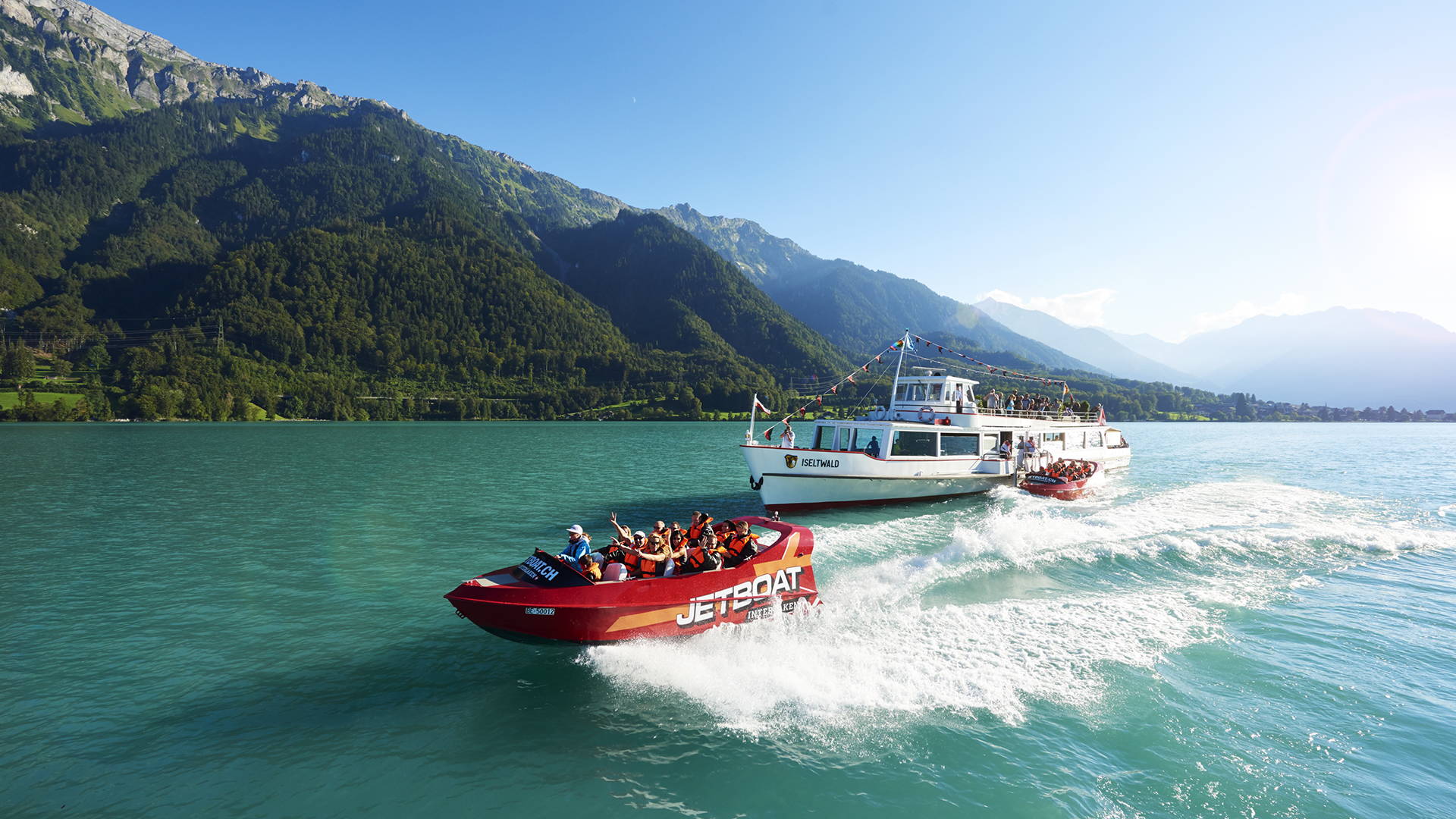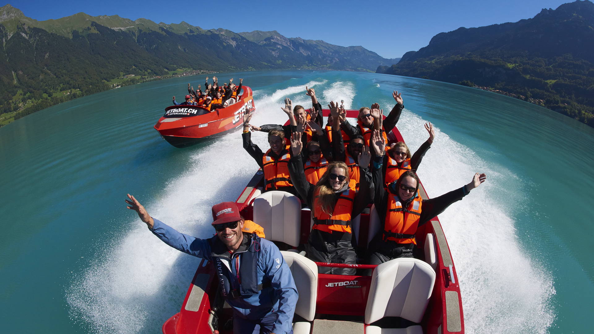 Nehmen Sie Platz im einzigen Jetboot der Schweiz und geniessen Sie eine unvergessliche Fahrt in eindrücklicher Landschaft und mit vollen 360° Drehungen auf dem türkisfarbenen Brienzersee!