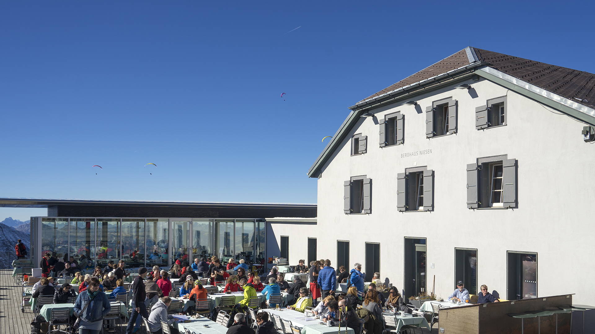 Wer ein vielseitiges Gastronomieangebot mit lokalen Produkten schätzt, sollte dem Berghaus Niesen Kulm mit seinem einzigartigen Glaspavillon und der grossen Sonnenterrasse unbedingt einen Besuch abstatten. Es erwartet Sie ein breites Angebot von Brunch bis hin zu speziellen Themenbuffets.