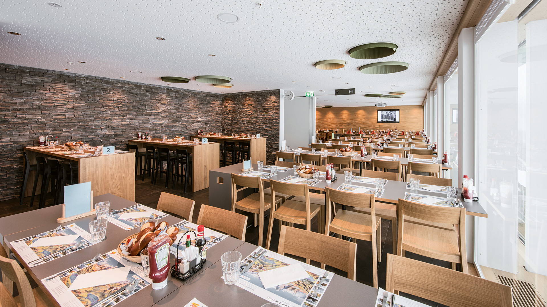 Im Restaurant Eiger finden bis zu 210 Gäste Platz, bei fantastischer Aussicht auf die Welt aus Eis und Schnee. In der exklusiven Eisbar, 30 Meter unter der Gletscheroberfläche, wird der Aperitif zum besonderen Erlebnis.