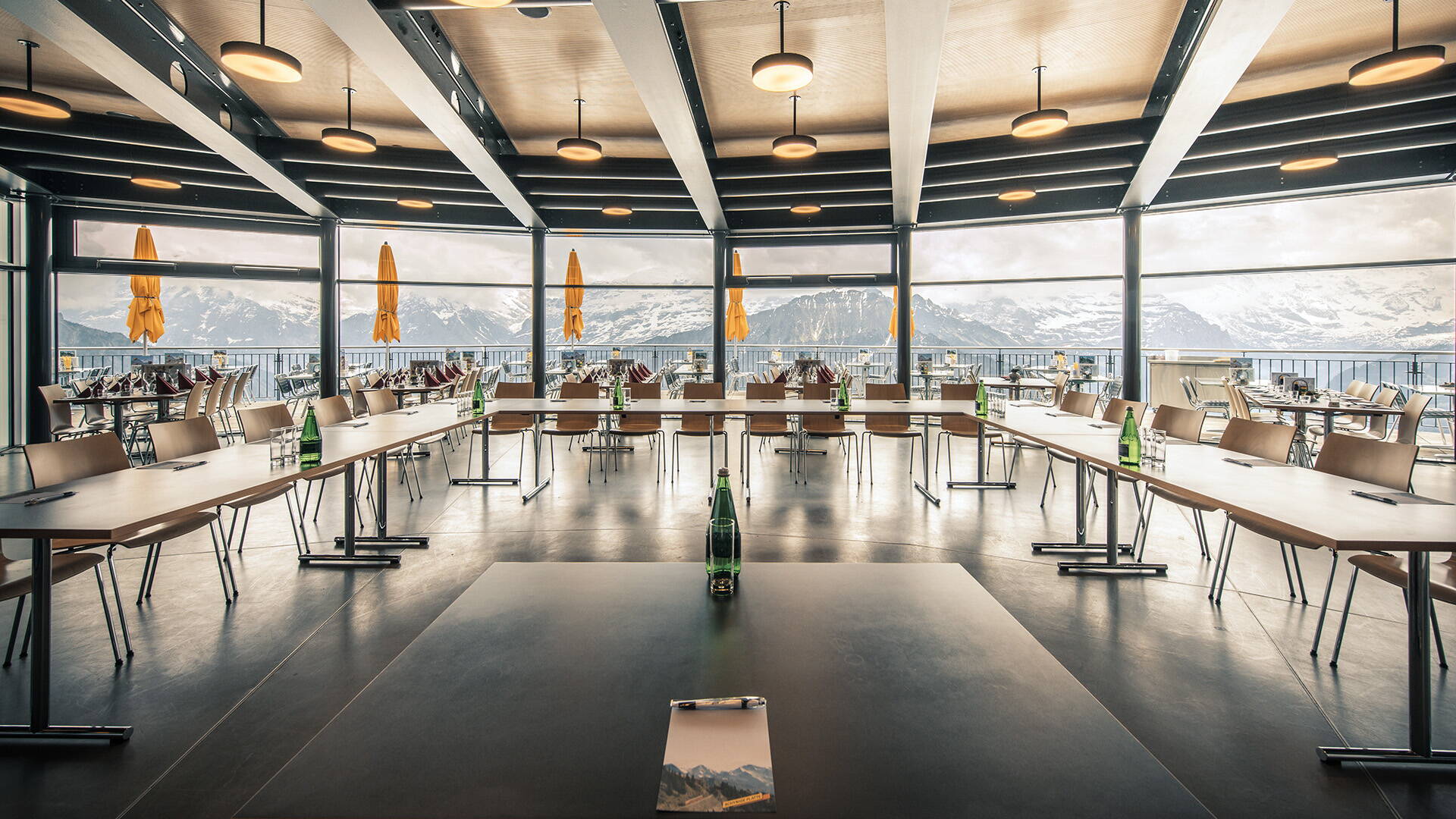 The panorama hall in the Alpine hotel more than lives up to its name. Here you can hold meetings with a view of the Eiger, Mönch and Jungfrau mountains in a room equipped with modern presentation technology at almost 2000 metres above sea level. During the breaks you can listen to the Alphorn players or admire the Botanical Alpine Garden with over 650 different plants and flowers.