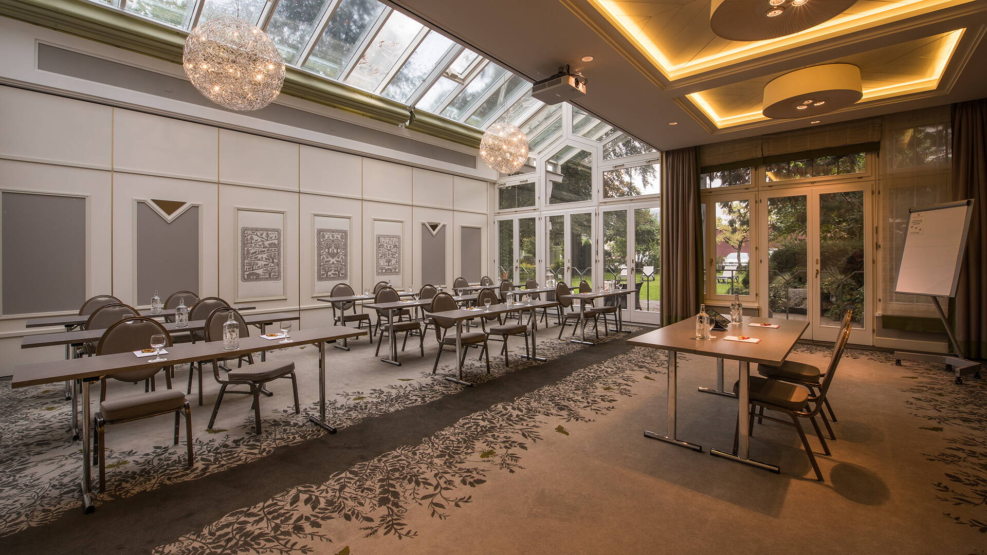 Our seminar rooms in the Pavillon are not only up-to-date in terms of design but also as regards technology. The rooms are flooded with natural light and are adjacent to our hotel park, where you can enjoy relaxing coffee breaks amid green surroundings. Thanks to sliding walls, these rooms are very flexible and can be enlarged or reduced as needed.