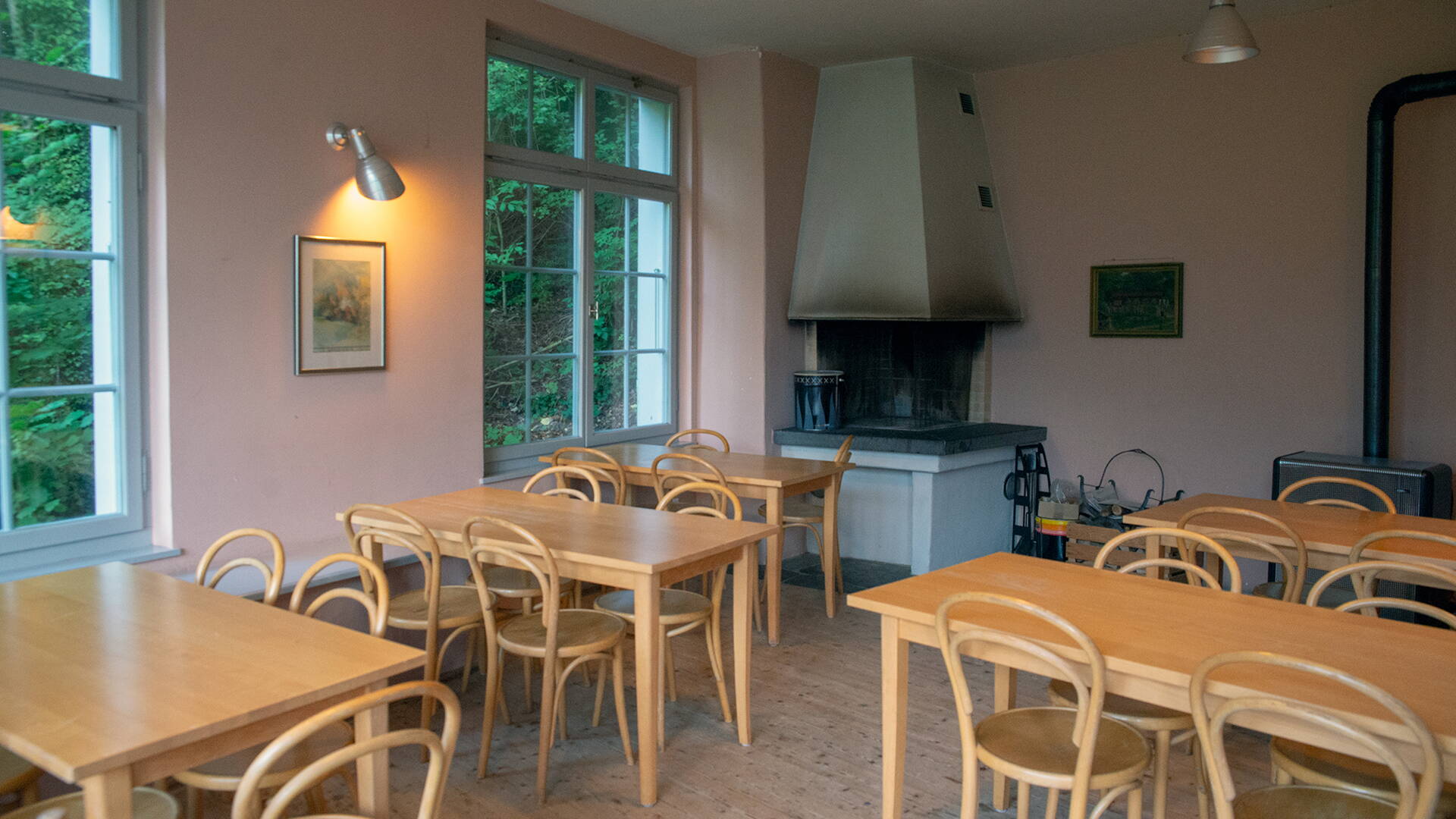 The Trinkhalle (beer hall) lies at the edge of the “Kleiner Rugen” Forest, just a few minutes outside of Interlaken. The unobstructed view of the bulk of the Jungfrau and the charm of the traditional rooms will also enchant you. The beer hall can be rented throughout the year. Three rooms are available: The open-plan beer hall with a direct view of the Jungfrau, the cosy, small Rappard Hall with an open fireplace, and the attic hall on the upper floor of the building.