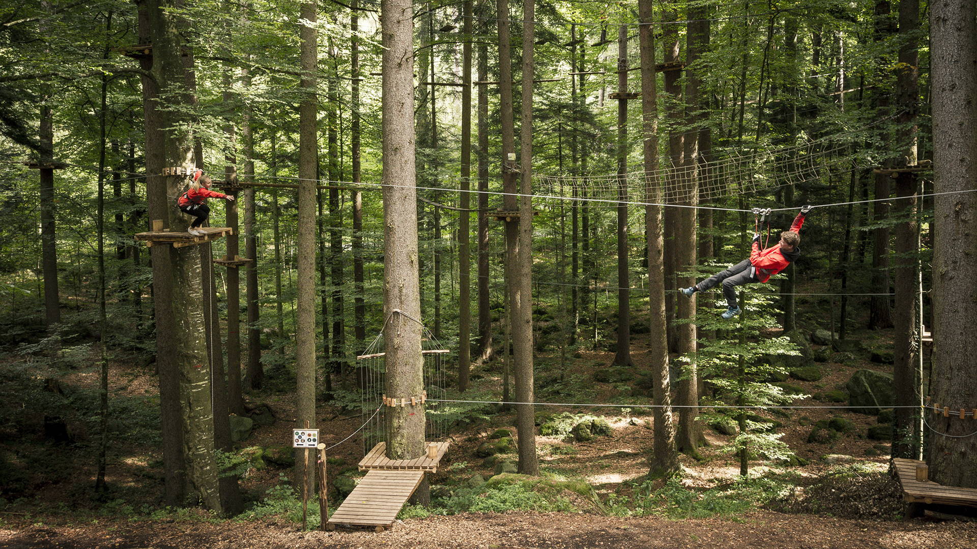 9 different courses with up to 120 different obstacles are waiting for you to master. From simple parcours near the ground to difficult routes at a height of 20 metres, the rope park offers fun and action for everyone. Up to 100 people can enjoy the park at the same time.