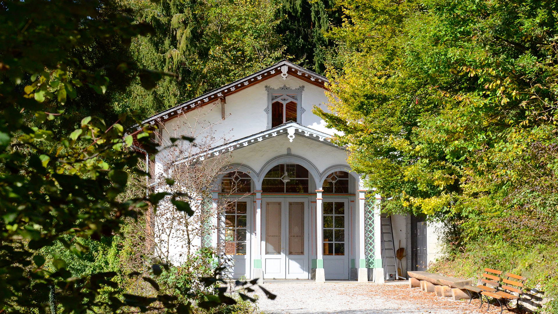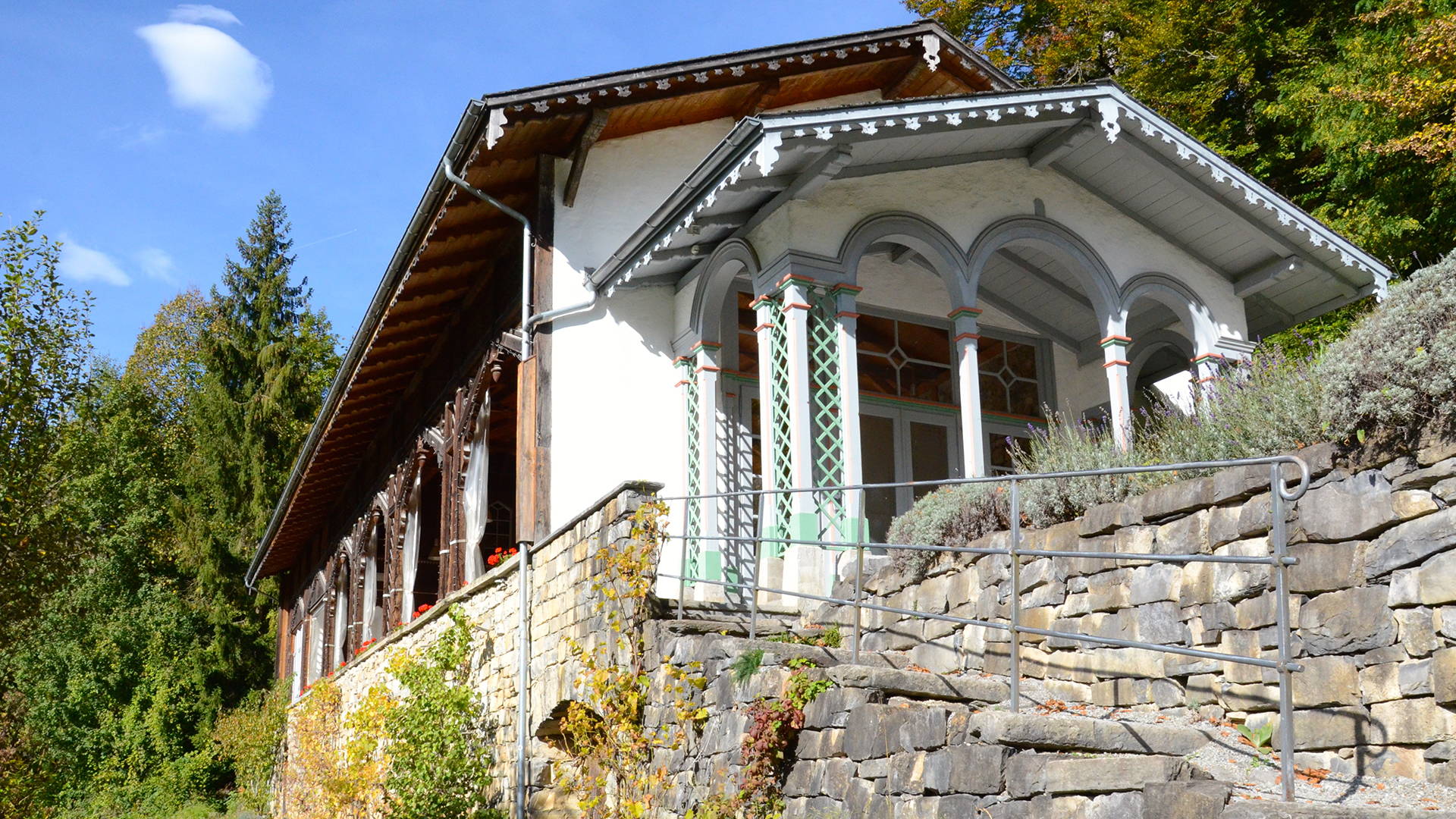 The Trinkhalle (beer hall) lies at the edge of the «Kleiner Rugen» Forest, just a few minutes outside of Interlaken. The unobstructed view of the bulk of the Jungfrau and the charm of the traditional rooms will also enchant you. The beer hall can be rented throughout the year. Three rooms are available: The open-plan beer hall with a direct view of the Jungfrau, the cosy, small Rappard Hall with an open fireplace, and the attic hall on the upper floor of the building.
